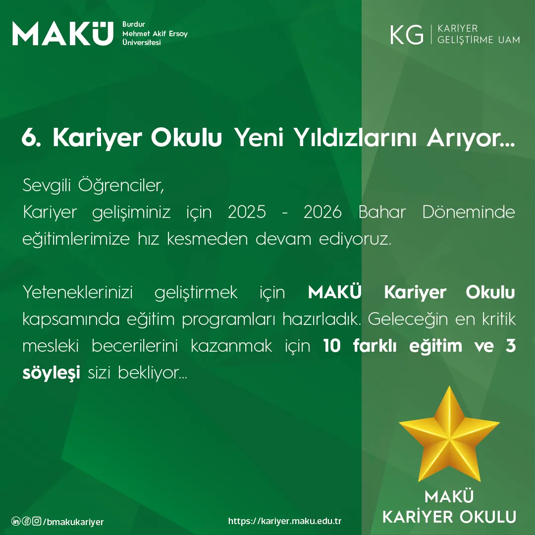 #KariyerOkulu #MAKÜKariyer  #5KariyerOkulu  #GeleceğeHazırOl  #EğitimleGüçlen 💪🎓